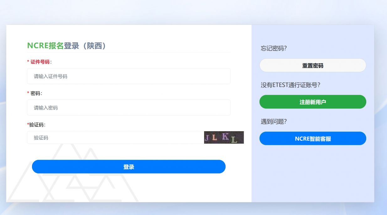 2、进入后会显示NCRE报名登录,输入身份证号码和密码,登录账号