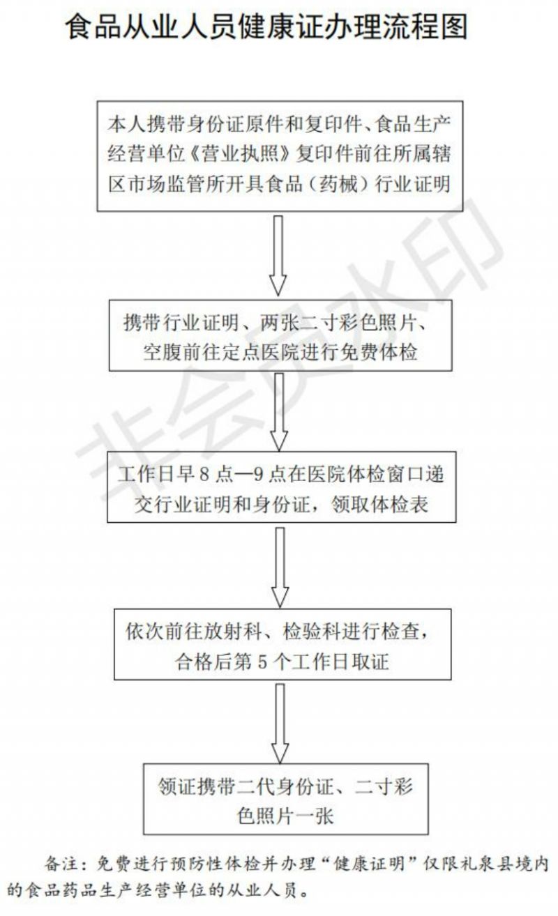 办理条件:在礼泉范围内,从事食品、药品相关工作人员。