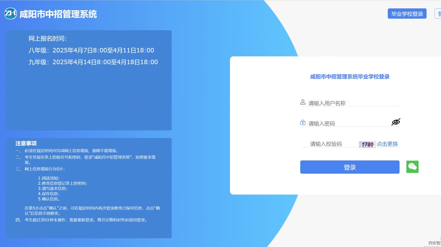 咸阳市中招管理系统:http://61.185.20.125:9900/