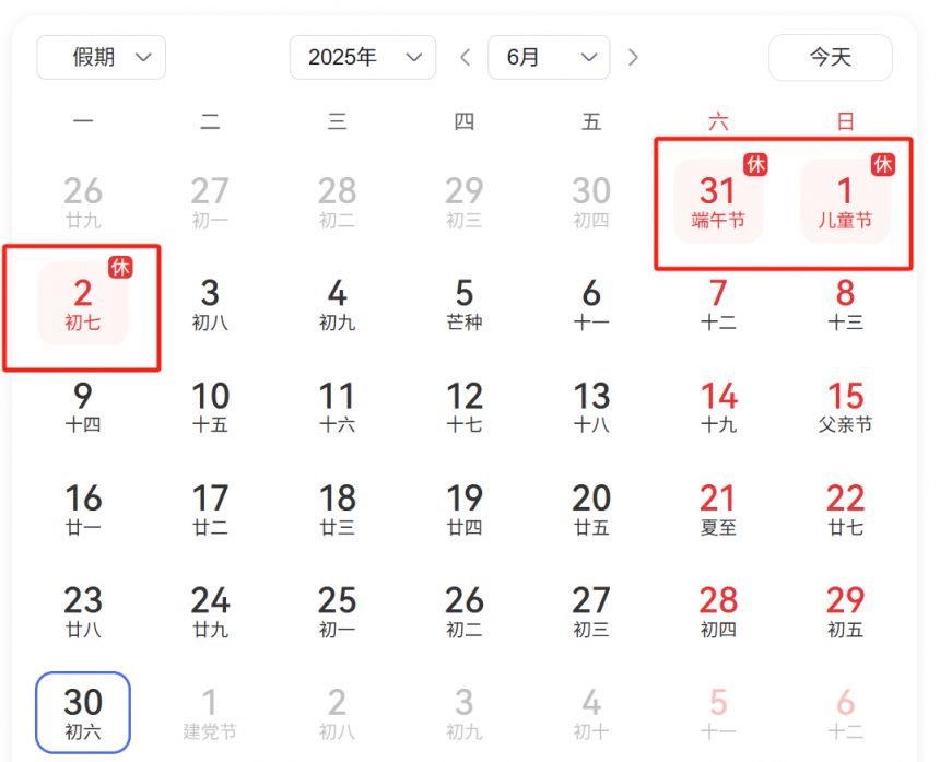 5月31日(周六)至6月2日(周一)放假,共3天。今年端午节不调休!