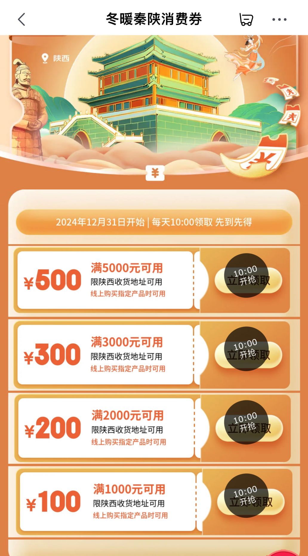 关于2025咸阳冬暖秦陕京东3C消费券的开抢时间,由于我无法获取实时数据,建议您关注以下途径获取准确信息: