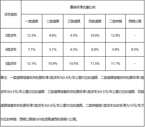 (一)全省高速公路载货类车辆费率标准在核定标准基础上优惠10%。