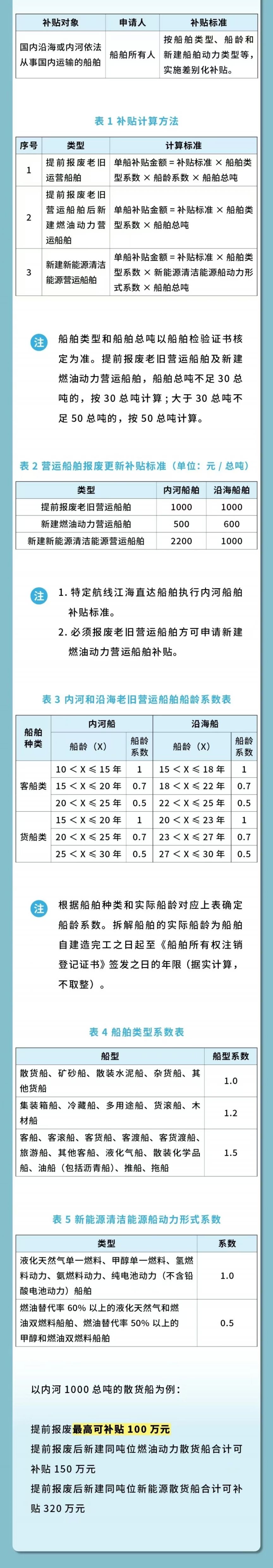 交通运输部、国家发展改革委联合印发《交通运输老旧营运船舶报废更新补贴实施细则》,自2024年8月2日起,至2028年12月31日止,对中华人民共和国境内的中国籍老旧营运船舶报废更新。