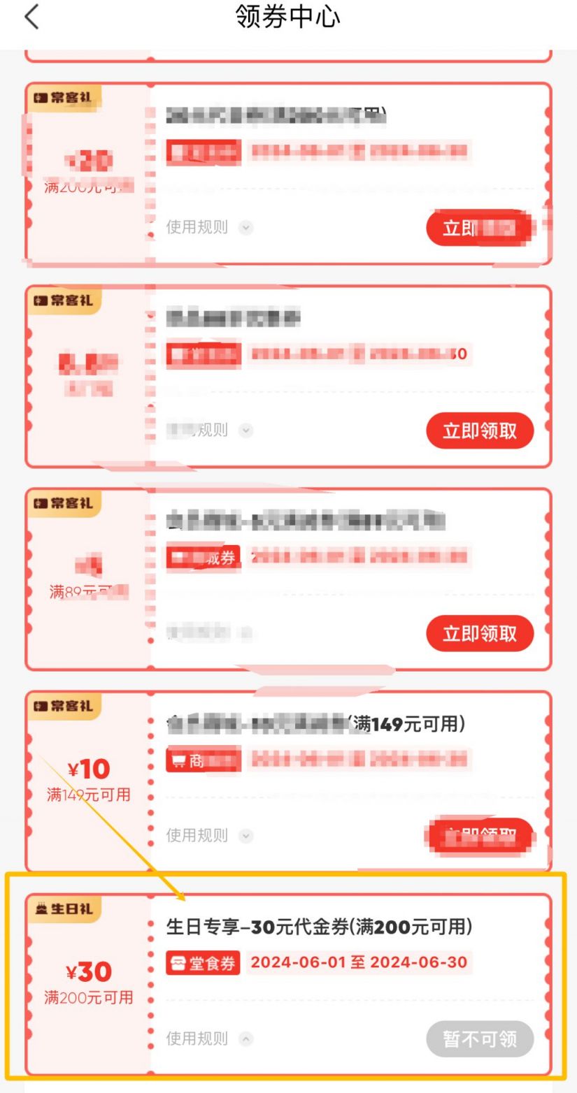 第二步,找到生日专享-30元代金券,点击【立即领取】,注意,此券需要在生日当月才能领取。